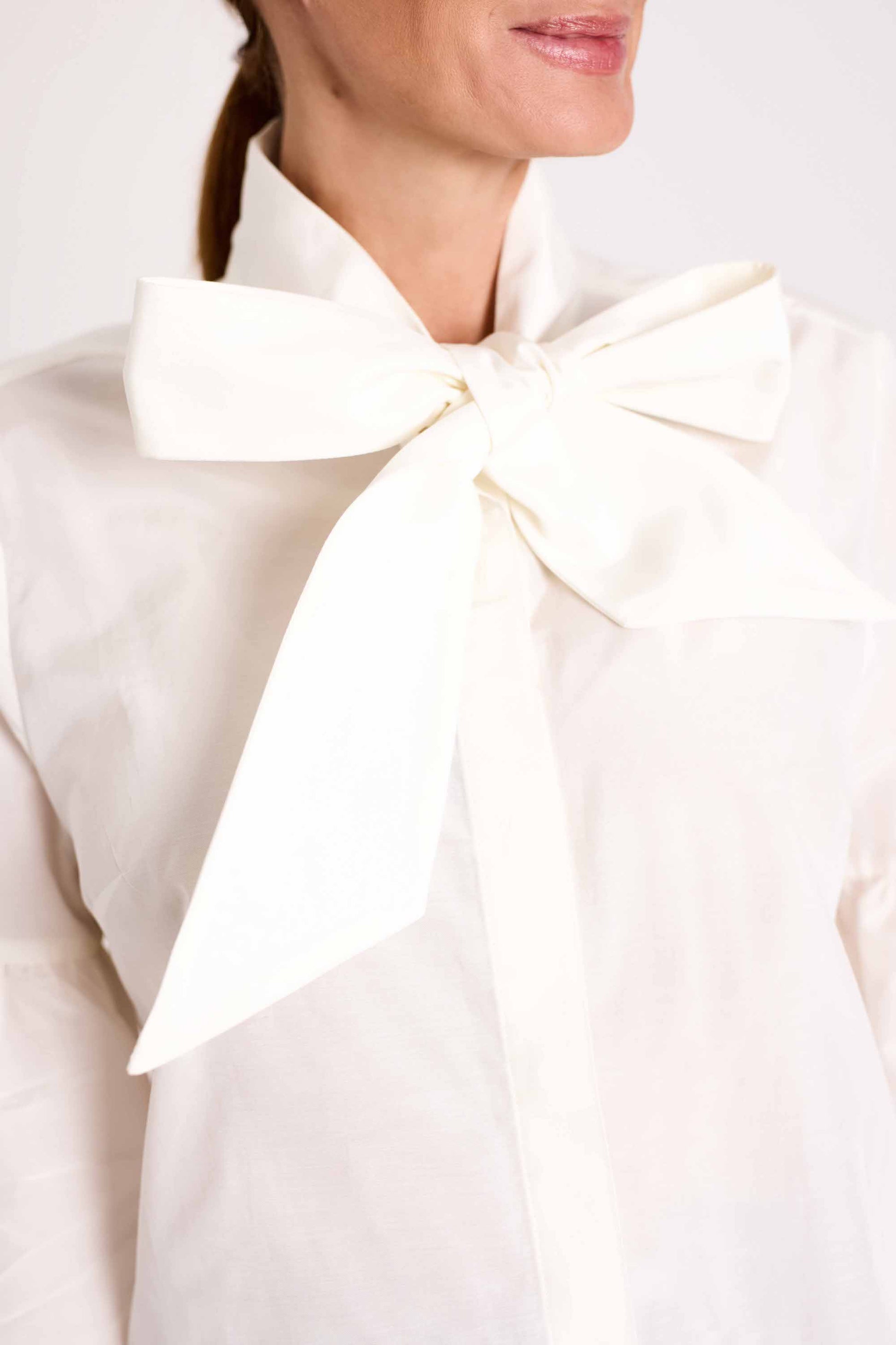 A RUE blúz széles nyakmegkötője játékos részlet, amely stílusosan variálható. Az elöl végig gombos kialakítás elegáns klasszikus, míg a buborék ujjak és a ráncolt részletek kényelmes hatást keltenek.